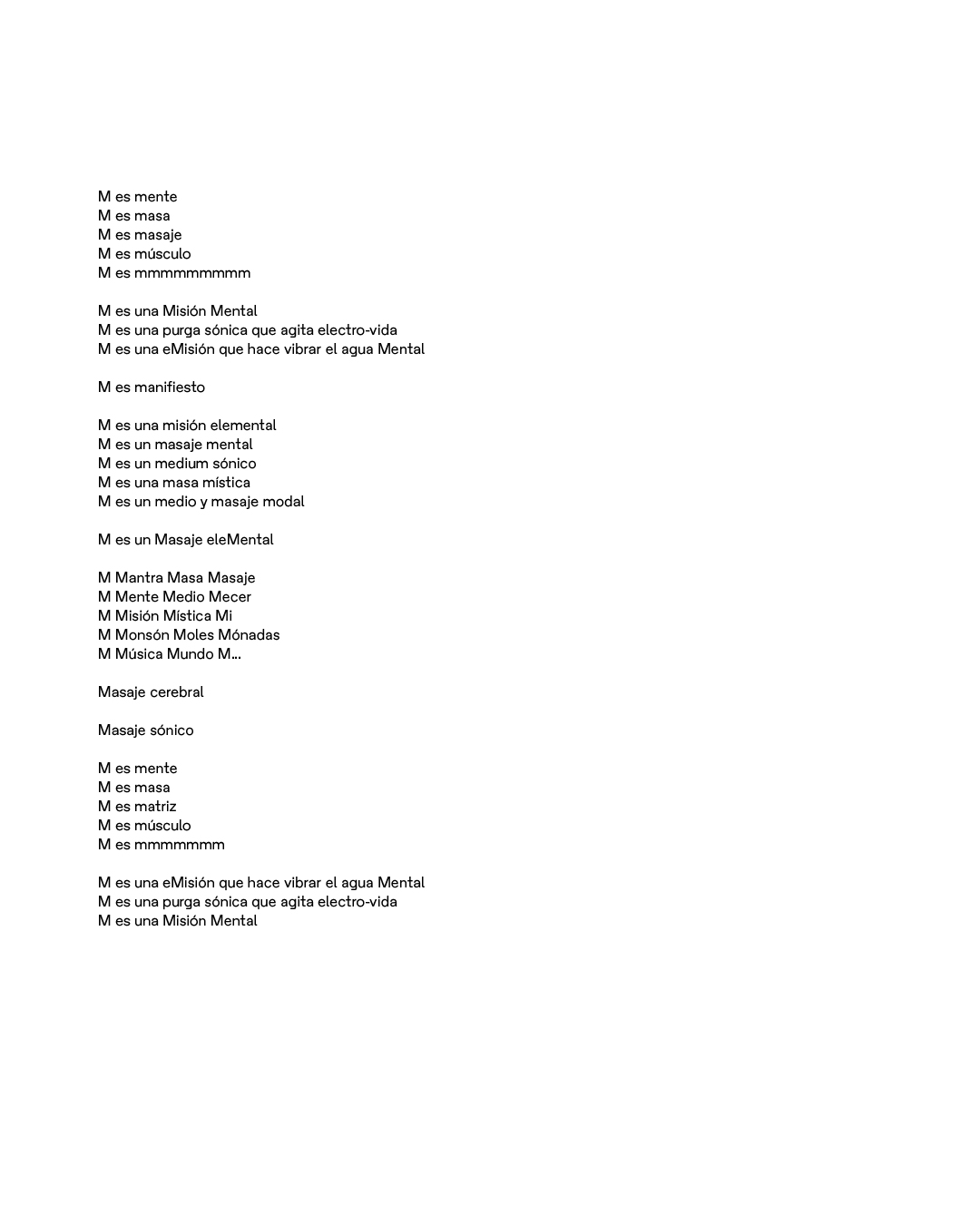 El POEM4RIO es un segmento formado por escrituras colectivas desarrolladas por el equipo de HAMMAM durante la pandemia y confinamiento. En circunstancias de distancia física, la escritura pasó a ser el cuerpo del proyecto. Mediante ejercicios colectivos en simultáneo y diferido, entre prácticas de escritura y escucha de ejercicios sónicos que se fueron retroalimentando mutuamente, surgió un cuerpo escritural que intersecta fuentes científicas, ficción y especulación poética. Las escrituras devinieron cápsulas sonoras, las que a su vez volvieron a transformarse en escrituras y así sucesivamente, en una circulación promiscua y circular entre escuchas, voces, palabras, afectos, pulsos de teclados y google drives. POEM4RIO es una recolección de las escrituras colectivas vertidas en ese proceso.